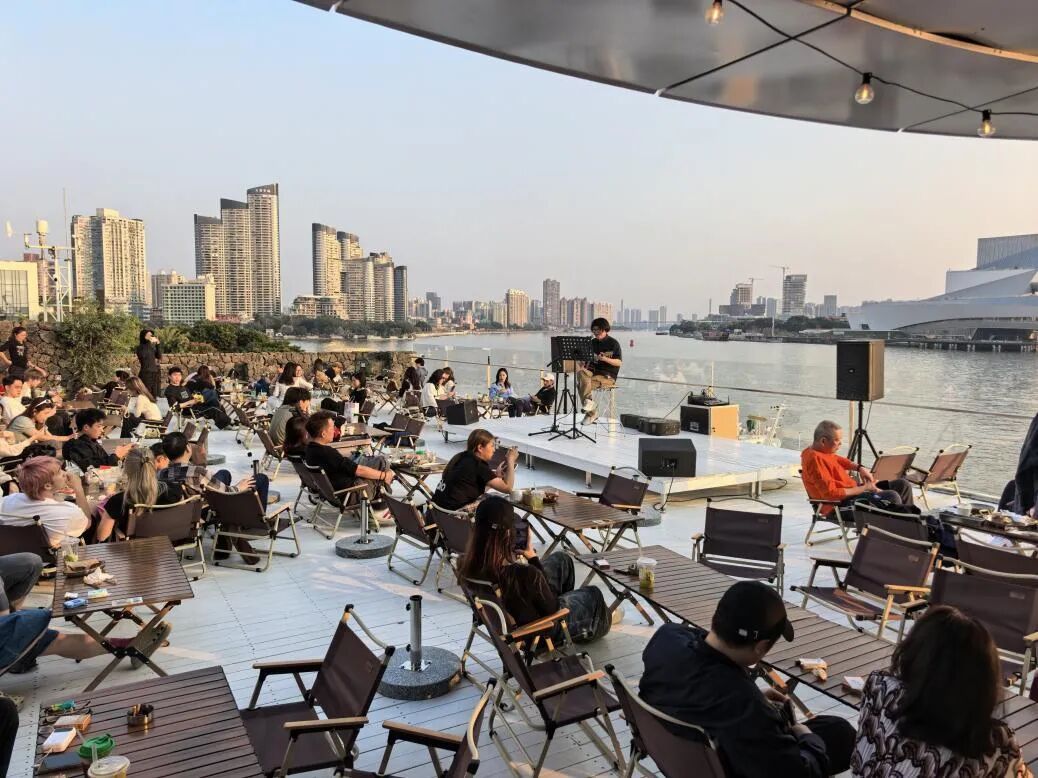 二、三层餐酒空间凭借江畔不雅景视线与千里浸式阔绰场景,成为众人夜间失业、不雅景收缩的好行止;首层引入顶级米其林粤式顾问,搭配极品AI手冲咖啡,为市民旅客提供“高限定餐+轻食茶饮”等各类化采选。