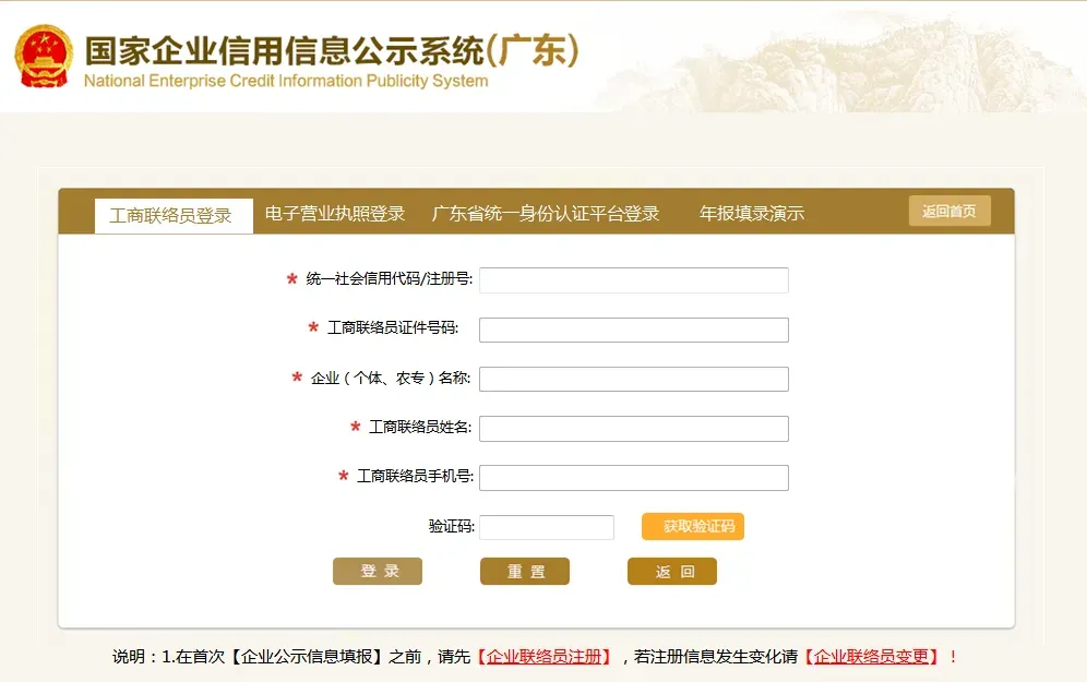 在初次【企业公示信息填报】之前,请先点击【企业都集员注册】,若注册信息发生变化请点击【企业都集员变更】。