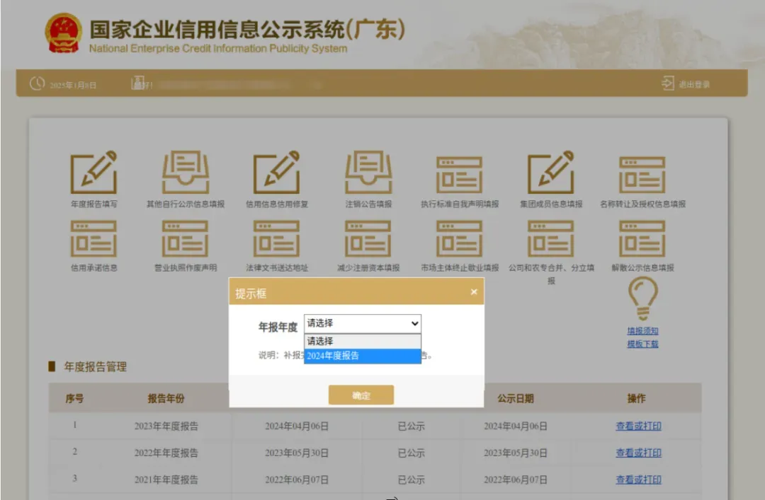 若是往年年报未报送,须先补录往年年报后方可填报今年度年报。