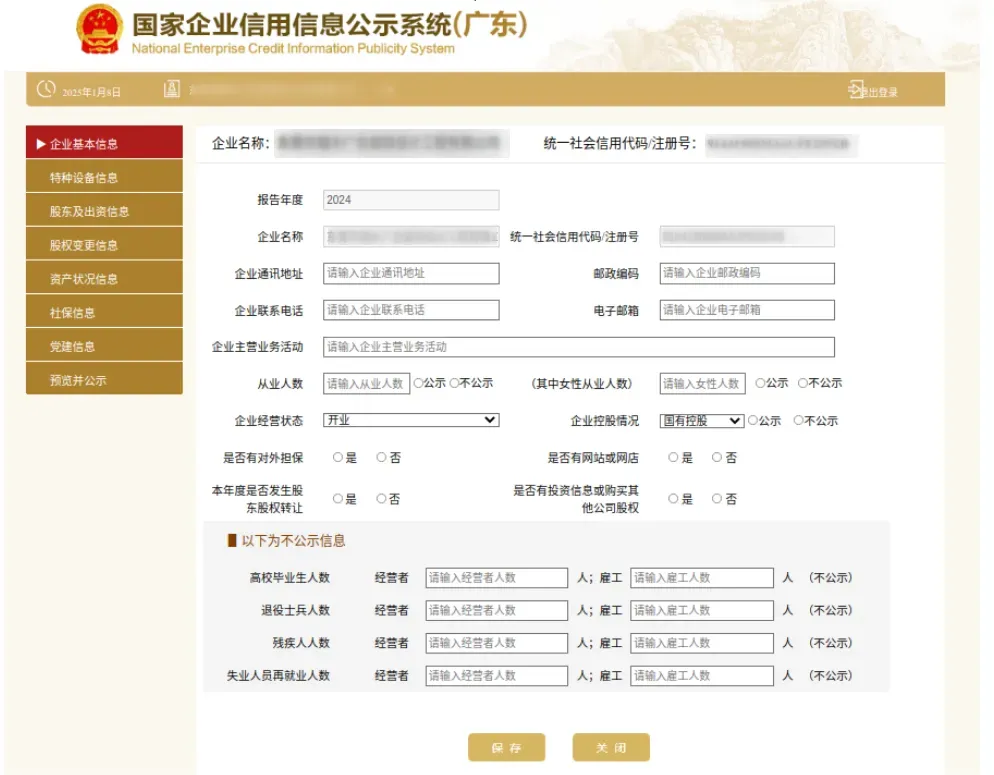 4.按技俩指示,填写年报关系本体,年报中部分数据可自行罗致对外公示或不公示。
