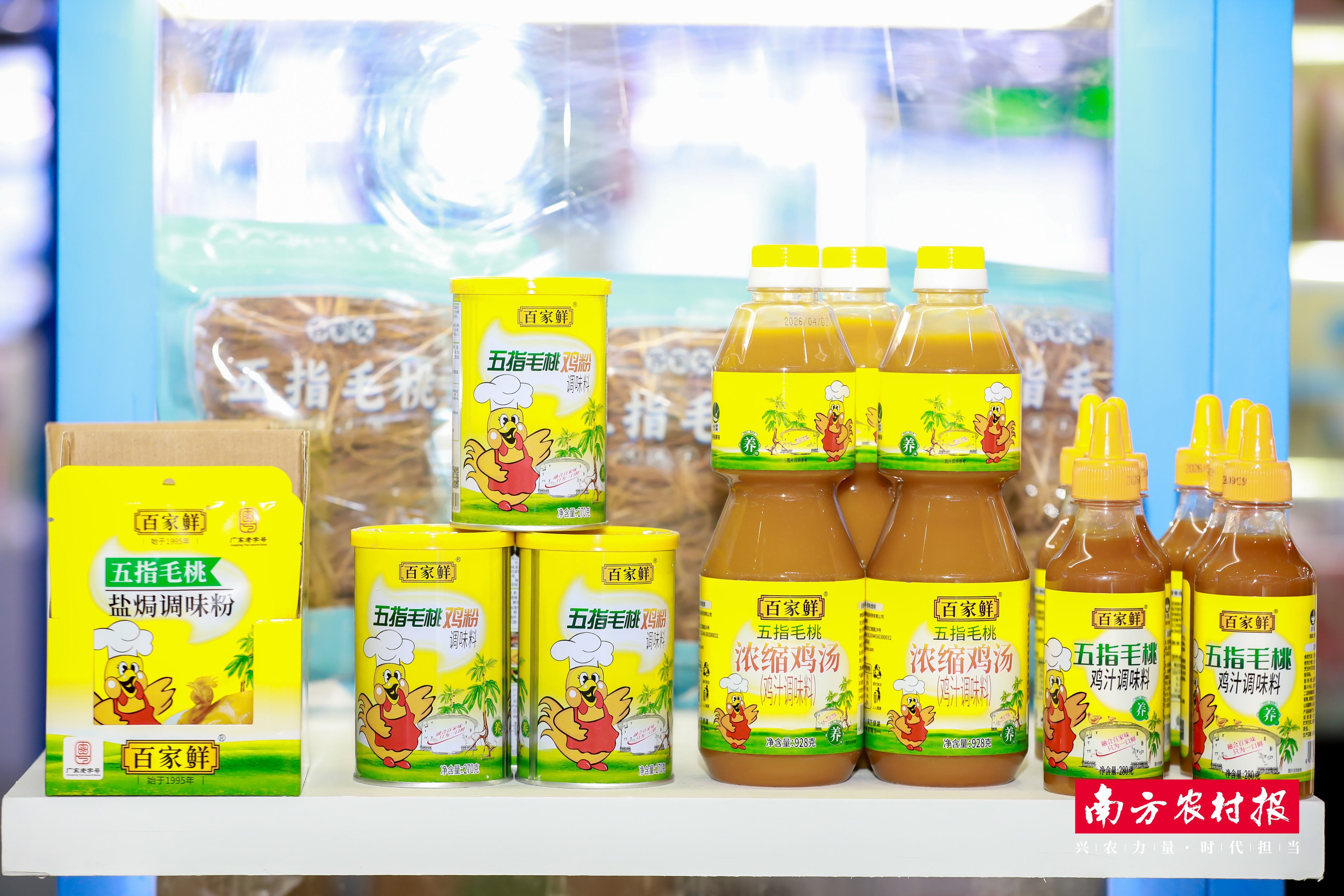 记者在现场看到,以五指毛桃开发的调味品一应俱全,不仅有五指毛桃酱油、鸡粉、盐焗调味粉等,还有五指毛桃口味的银耳燕窝羹。