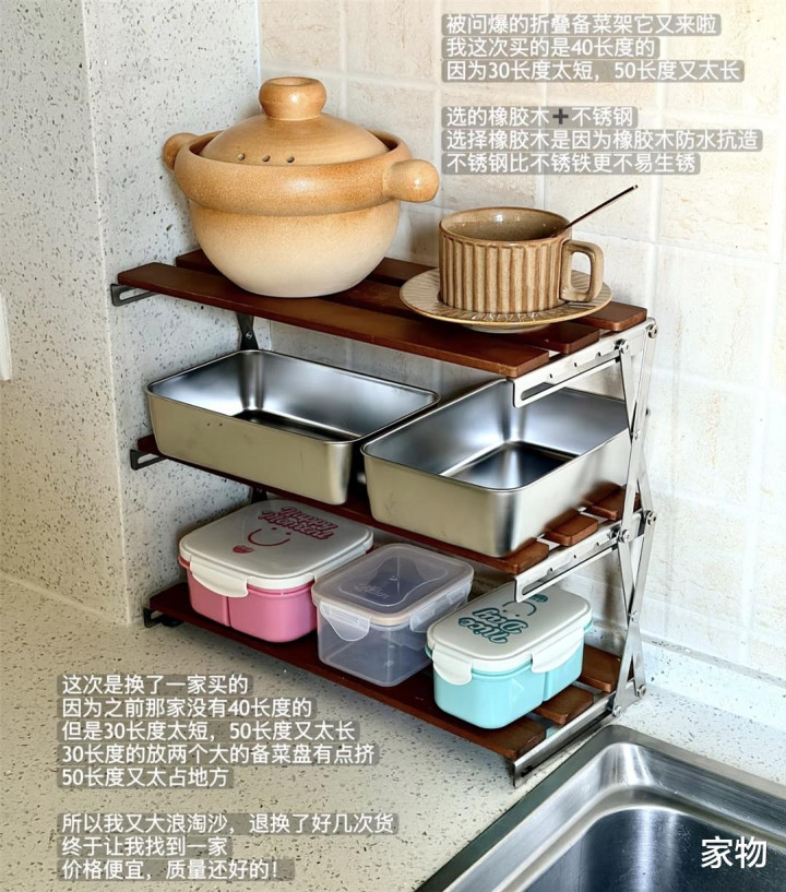 三层的折叠式收纳架,放在水槽控制收纳,简略行为念餐边柜、餐桌上的餐具杯具收纳架险些完好,自己就体积工整不若何占地,无须的技能还可以十足折叠起来,随性找个抽屉或弊端塞进去,开云体育不锈钢+木板的材质又很面子,无敌。