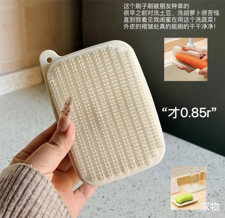 洗土豆洗胡萝卜这类土壤较多的蔬菜,我目前齐会用这种清洁刷,它的上头有短小但考究的刷毛,攥在手上,略略用劲,就能把蔬菜名义刷得一干二净,就连弊端里的土壤也能去撤除,好用的很。