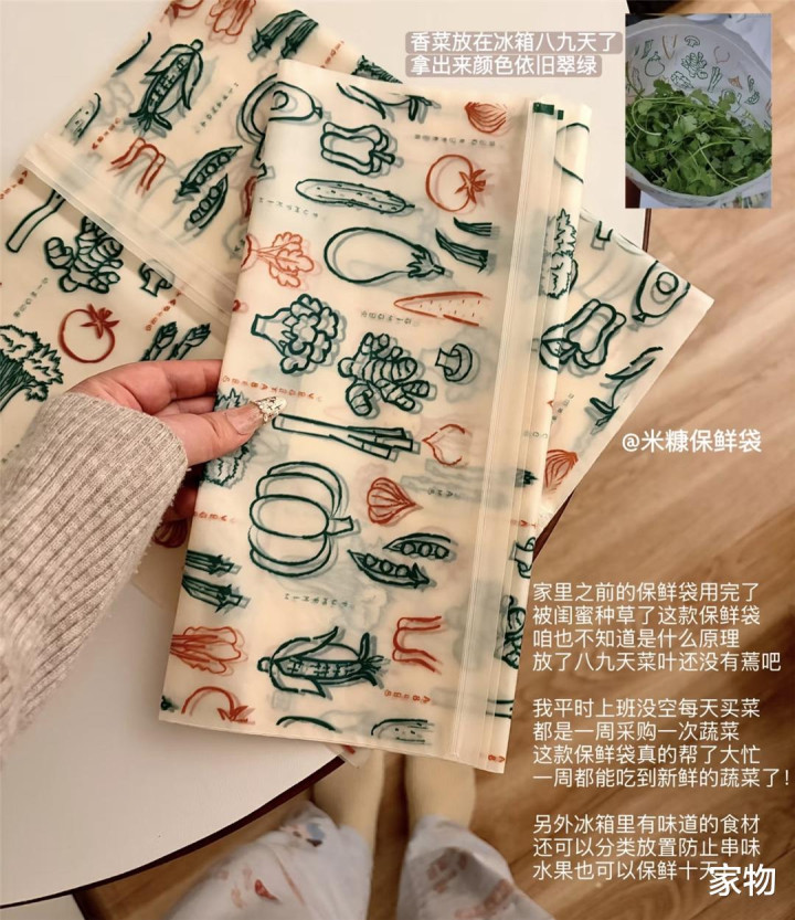 说是用米糠作念的保鲜袋,我也不知谈到底是什么个旨趣,看它不贵还面子就买了,没念念到保鲜遵守真实让我目下一亮,尤其是放些叶菜,扔到雪柜里哪怕一周齐不会打蔫,真实是我用到过最好用的保鲜袋之一。