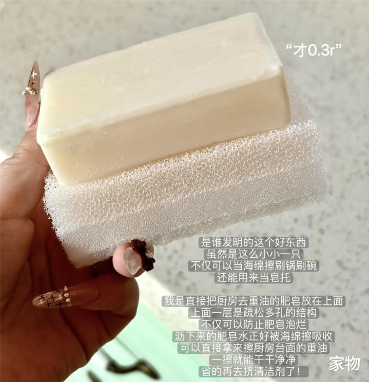 也不知谈是谁接头出来的东西,自己就是个海绵洗碗刷,但上半部分孔隙较大,可以起到沥水的遵守,放在台面上,平直把肥皂香皂放上去就可以吸附水分,起到沥干遵守。