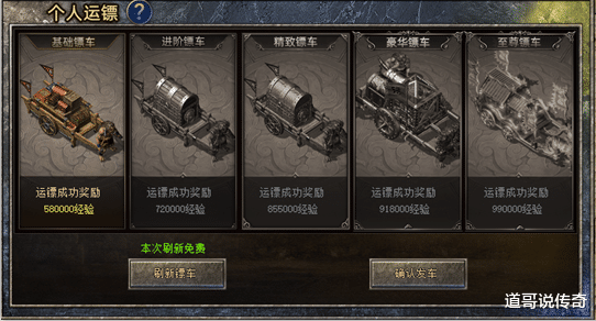 先望望押镖的操作细节,如上图所示,玩家每天有2次免费契机刷新镖车,kaiyunsports从基础镖车到至尊镖车对应不同的教训值。2次契机用完之后,就需要销耗金币刷新镖车了,逐日可用金币刷8次镖车,能得到些许教训值纯看气运了。若镖车中途被袭击未达到绝顶,可得到80%奖励,也算不错了。押镖手脚教训加多的另一新渠说念,凡是谨守官服的玩家应该齐会本心的。