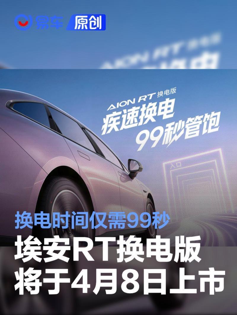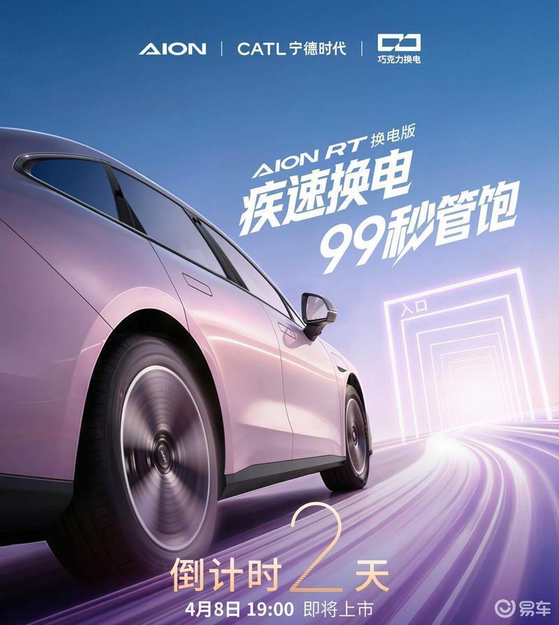 kaiyunsports 埃安RT换电版将于4月8日上市 换电时期仅需99秒