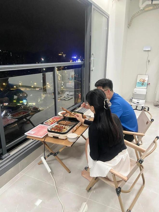 再比如时常烧烤时,只需要把烤炉往阳台上一架,再也不必追忆满屋油烟味了。