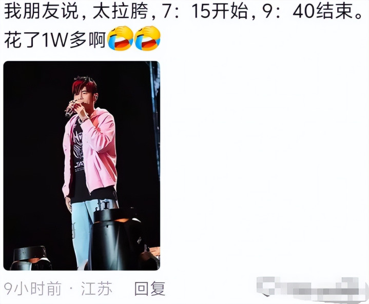 有网友说,我方一又友从黄牛那买的门票,一万多,可演唱会7点15启动,9点40就端正了。