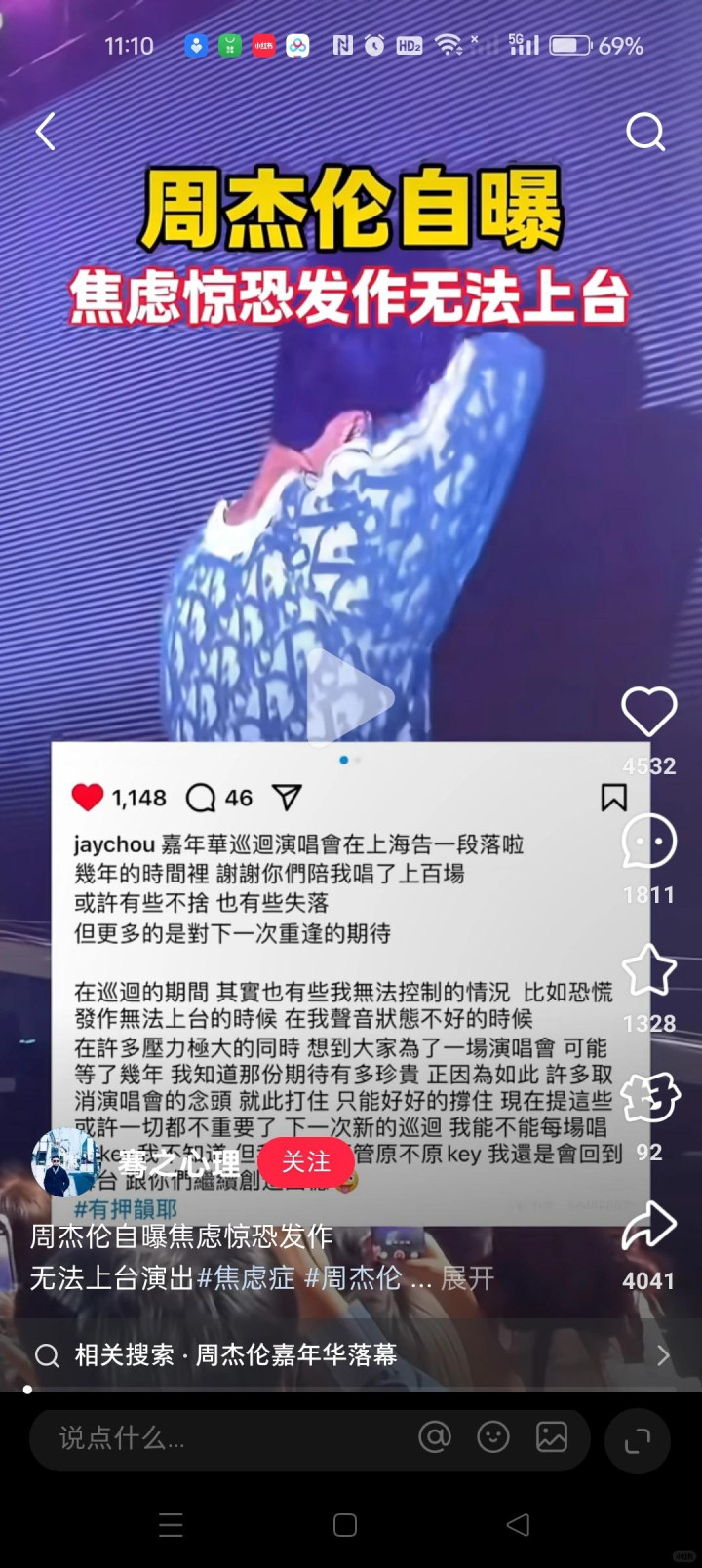 其实周杰伦我方也知说念不如以前,在2025年巡演端正后,他就说过,我方声息情状很差,致使病笃到不敢上台,还提前跟歌迷打了呼叫,说下次可能唱不了原调了。