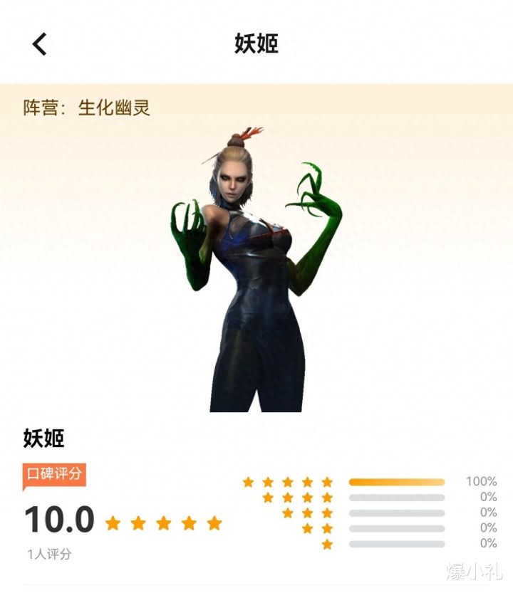 许多东谈主可能不知谈,目下的妖姬口碑能好到什么进度了,咱们可以掀开穿越火线的生化图鉴,掀开妖姬的评分一看,好家伙,班师等于10.0的满分,何况,好评率更是来到了100%,反不雅跟她同期期的共事灵魂忍者,东谈主家只拿到了6.0分的口碑,足以阐扬妖姬的评分究竟有多好了,那为啥妖姬的口碑好到这个进度呢?