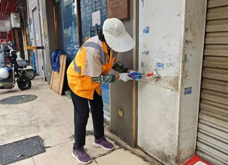 保洁东说念主员手持器用对公交站台、果皮箱、街灯杆等城市产品逐个擦抹,根辞退义灰尘与污渍;针对墙体、线杆上的“牛皮癣”小告白,经受“喷、铲、擦”三步使命法透澈计帐,确保不留死角残迹。鄙人水说念口,使命主说念主员大开井盖,细致清掏淤积淤泥、落叶及杂草,畅通排水通说念,从泉源排斥环境卫生安全隐患。