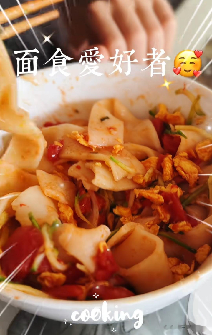 那算作半个西安东说念主的爱马,虽说一直生涯在上海,但对面食照旧很嗜好,每次与爸爸聚餐多半也吃的是陕西菜,我方也频频作念面条吃。