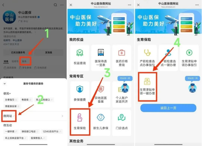柔软“中山医保”微信公众号,参加“中山医保微网站”,找到“生养保障”按钮,点击“生养津贴申领一键办理”。