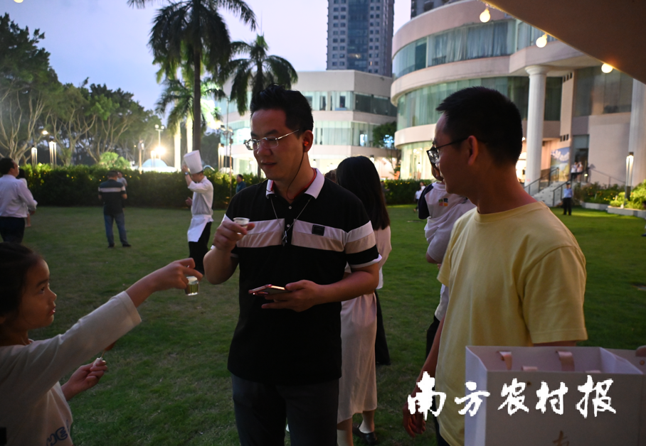 客东说念主在“华好意思晟音 乐享时光”公益音乐会品饮广东三宝居品。